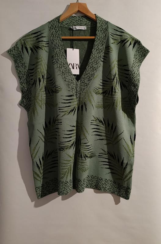 Трикотажный жилет бренд ZARA (модель оверсайз),рукав приспущен.Цвет мяты. Замеры изделия :Длина-71см Ширина 65см. Плечи свободные.