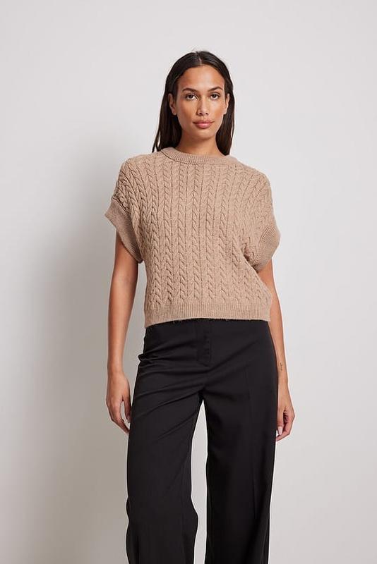 💛 Вязаная жилетка с узором «елочка» от бренда NA-KD Размер: M✅ • цвет: бежевый • кругла горловина • дизайн: без рукавов • Состав: 83% акрил, 9% полиамид, 8% полиэстер