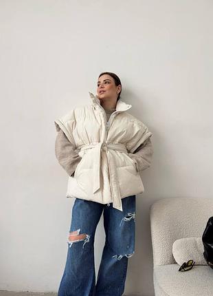 Идеальное решение для погоды как сейчас Наш пуховый жилет Верх плащевка люкс, подклад Наполнитель эко- лебяжий пух Очень легкая, комфортная, стильная С помощью пояска - подчеркивается фигура🥰 1550 грн Светр 1250 грн