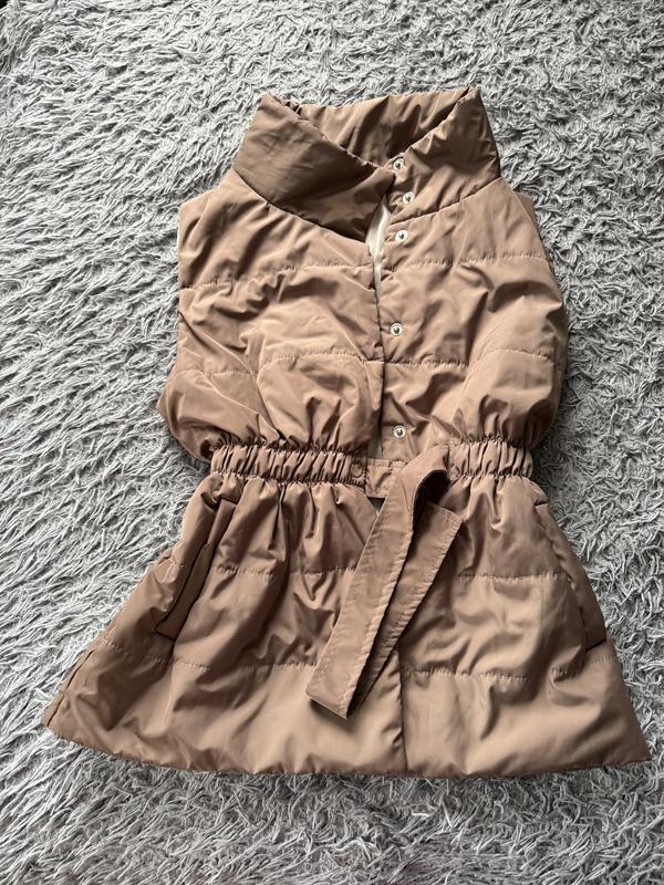 Носился один сезон, талия на резинке Плечи 45 см, ширина под руками около 51 Длина 66