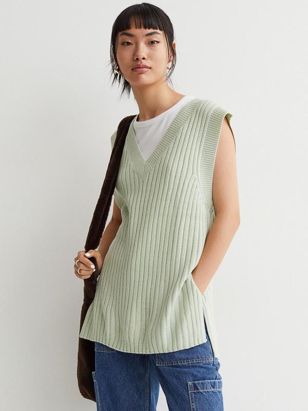 М'ятна подовжена безрукавка H&M Розмір і склад на фото ПОГ (груди) - 45 см.- 55 см. (тягнеться) ПОТ (талія) - 44- см. - 54 см. Довжина від плеча - 77 см. Стан ідеальний,без дефектів