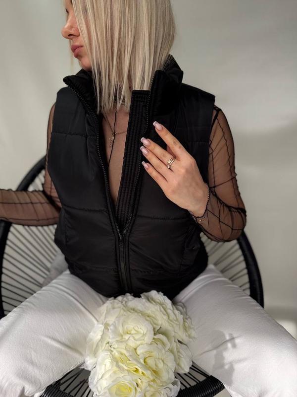 Жилетка мод.185 Фото реал✨🔝 ☑Размер:42-44,46-48 ☑Кольори:чорна,біла,бургундий,шоколад ☑Ткань: пластика эми +силион 200 Очень качественная и стильная жилетка с двумя функциональными карманами. Наполнитель – силикон, который не сбивается при стирке. Подкладка выполнена из плащёвки, поскольку обычная подкладка со временем может изнашиваться и бахрома.