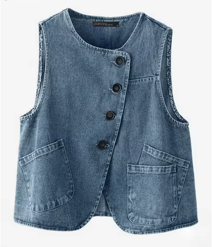 Жилет из ткани красивого состава, имитирующего деним, хотя таких потертостей, как на промо, нет. Ткань тонкая, 65% хлопок, остальные - вискоза. Асимметричные карманы. Розмір на бірці XL. Замеры; плечи 36 см, полуобхват бюсту 50 см, полуобхват талии 52 см, длина 59 см. В модели на последнем фото бюст 105 - тесно.