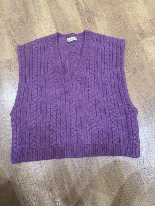 Вʼязаний теплий жилет довжиною 49 см. Ширина 46 см. Розмір S