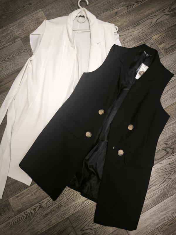 Два по цене одного. А отличного состояния жилет ( пиджак). Размер 48, можно и на 46. Засчитывается пояском. Длина 80 см, полуобхват 50 см, но все регулируется за счет пояска. Черного цвета состояние нового