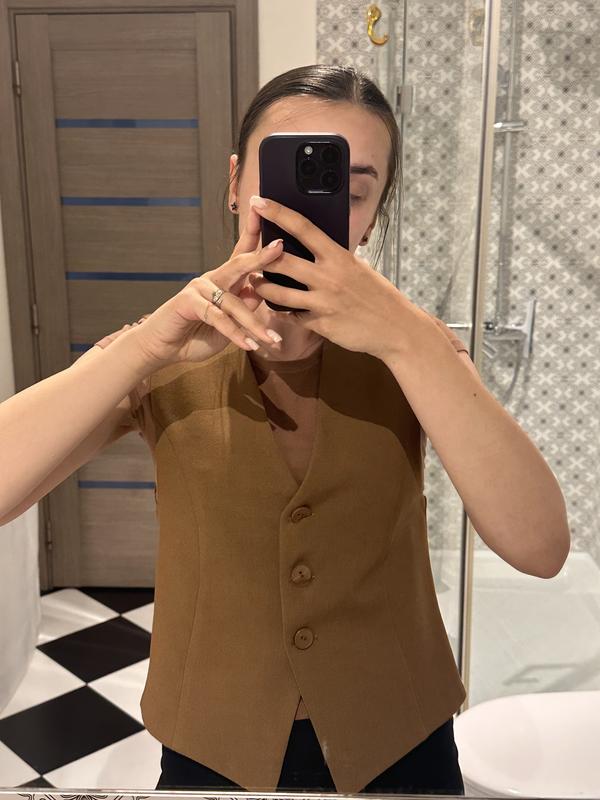 Жилет з V-подібним вирізом Застібається на ґудзики На підкладці Зручна посадка Розмір хс Напівобхват грудей 37см Довжина 47см