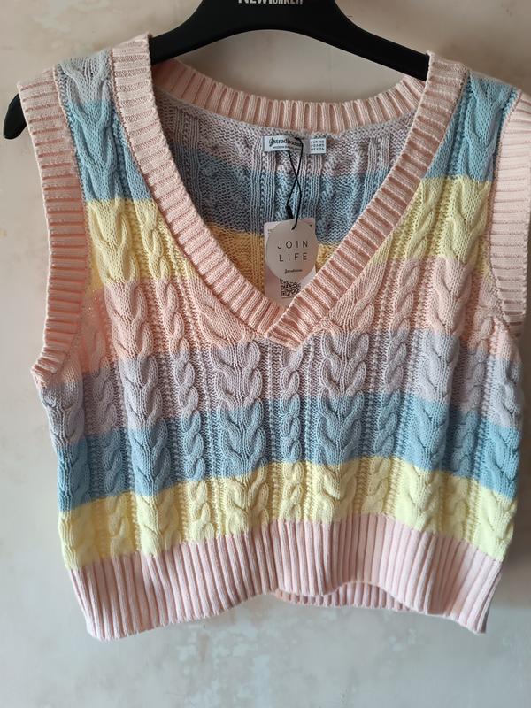 Очень нежная жилетка! Идеально подойдёт под рубашку! Пог 47, длина 48, плечи 35. 100% Котон. Отправляю НП по предоплате, Укр почтой по полной оплате.