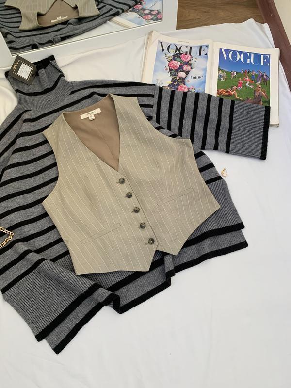 Жилет стильный Размер 38, М Полуобхват груди 46 см Длина 53 см Материал: 15% лен, 83% вискоза, 2% полиэстер Подкладка: 20% хлопок и 80% полиэстер Состояние: идеальный