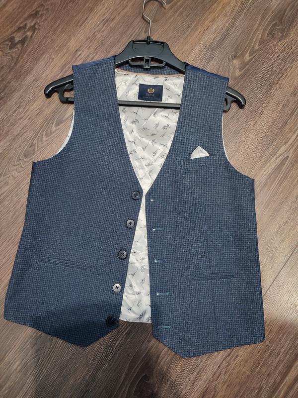 Классический, стильный, костюмный жилет Next, мужчина/женщина, благородный синий цвет, акцентная подкладка, состав ткани указан на бирке, жилет структурированный, хорошо держит форму, качество исполнения безупречное, состояние новой вещи, без признаков ношения, карманы зашиты еще, сток, размер по бирке 152 см, ЗАМЕРЫ: плечи 31 см, расстояние от подмышки до подмышки 41,5 см, пройма 20,5 см, длина спереди от плеча 55 см, длина по спине 50 см. Фото на теле не имеет. Делайте выбор сознательно, возврат не имеет.