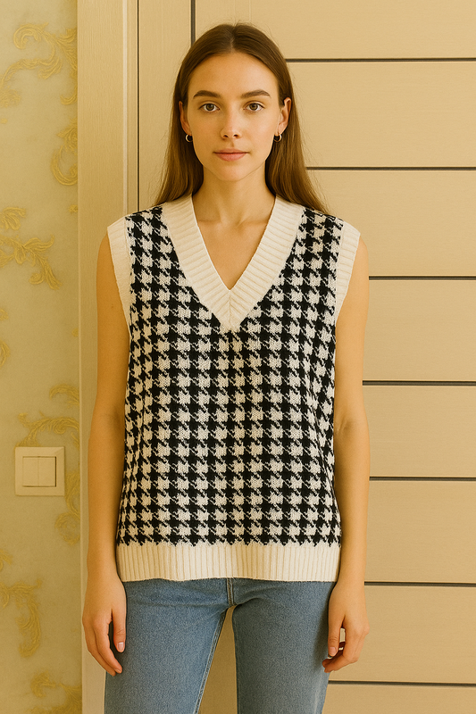 Жіноча жилетка в принт гусяча лапка,в чорному білому кольорі. Бренд QED LONDON, розмір L. Тканина акрил.