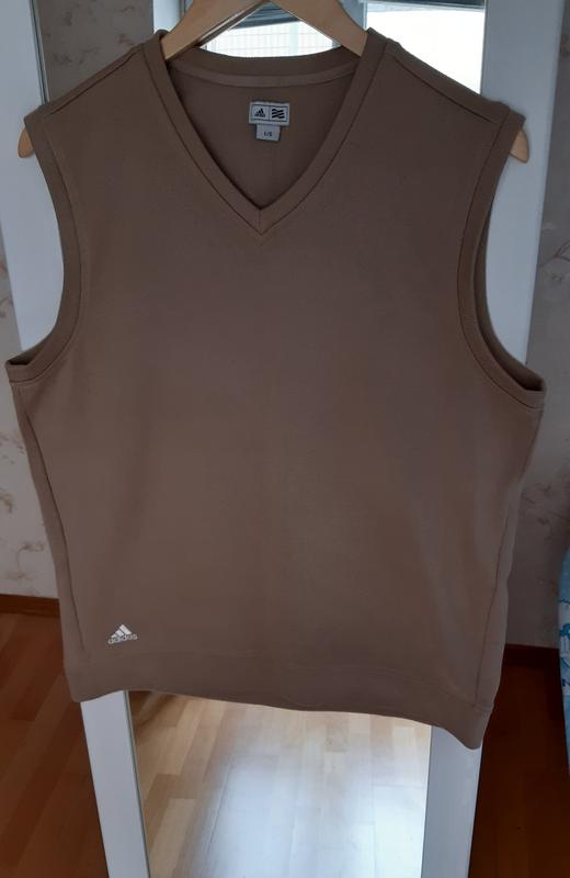 Жилет Adidas оригинал Классический спортивный жилет без рукавов от Adidas. Мягкий и приятный к телу материал, V-образный вырез, нейтральный бежевый цвет - отлично сочетается как с рубашкой, так и с футболкой. Размер: L/О Состояние: отличное, без дефектов. Замеры длина 65см,грудь 54см, плечи 44см.