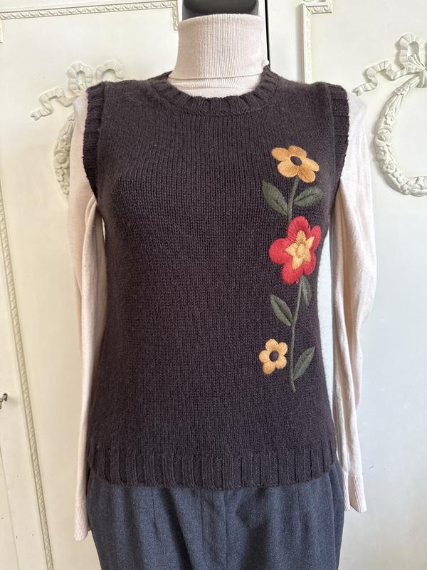 Склад:вовна-100/. Колір коричневий. Вишивка квітів гладдю. Розмір по бірці-М. Заміри: довжина-56 см, ПОГ-40 см, ПОБ-40. См. Стан ідеальний.