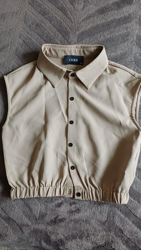 Жилетка безрукавка на пуговичках, внизу на резинке. Состояние идеальное. Обг. 80 Длина 42