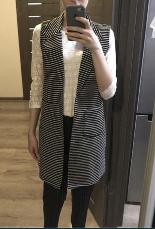 Стильний подовжений жилет в дуже хорошому стані. Розмір - S/M На фото зріст -170 см За бажанням можу виміряти параметри.