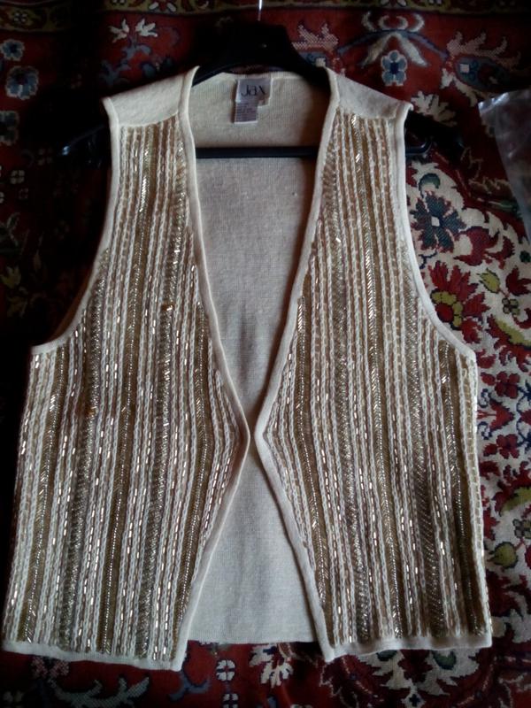Жилетка з лляного трикотажу вишита бісером та стеклярусом, дуже ефектно виглядає, на гольф, пул, футболку.