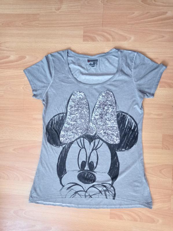 Футболка з ефектом зістарення. На бантику Мікі паєтки. Заміри на фото.