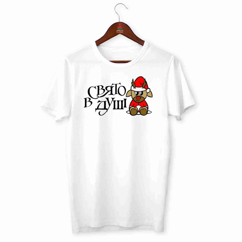 Футболка з новорічним принтом "оленя в шапці санти. свято у душі" push it