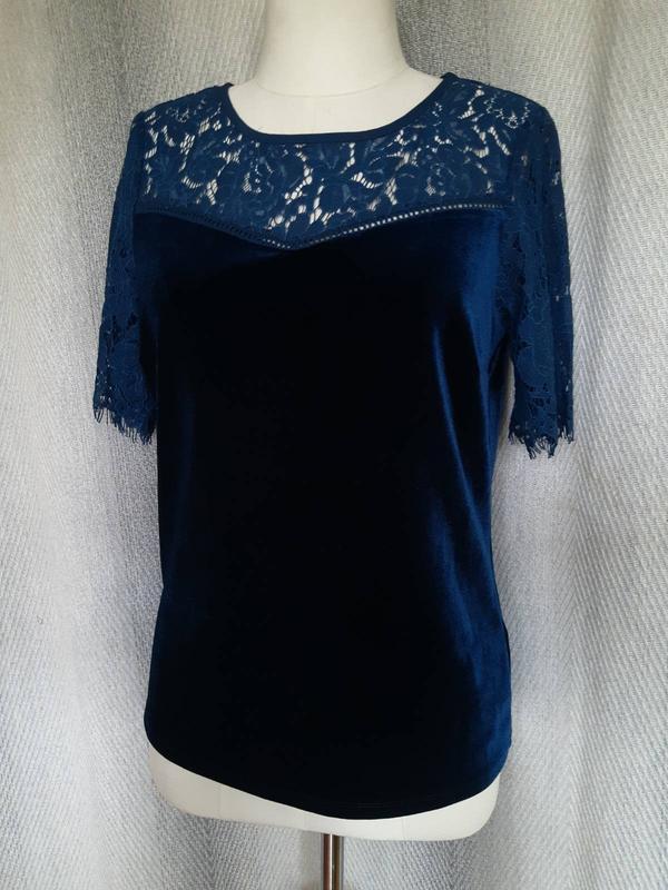 Женская велюровая, бархатная футболка, блузка, блуза, кофта с кружевом.