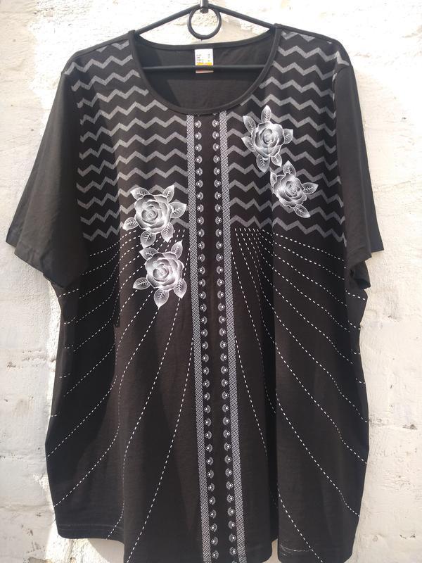 Стильная котоновая футболка с розами, размер евро 48. Плечи-43смПОГ-63см, ПОБ-66см, длина-68см. 100% хлопок. Новая. Сток. Производитель: Германия