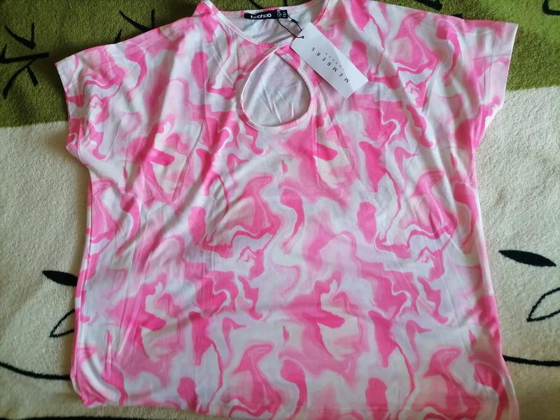 Женская футболка с вырезом капля, приятного розового цвета, размера 18, замеры длина 64, пог-62
