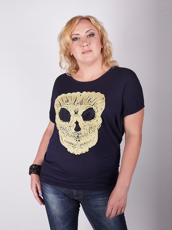 Новая футболка оверсайз с аппликацией череп темно синяя l-xl
