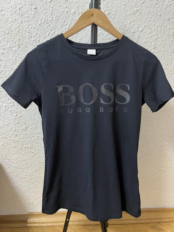 Футболка от Hugo Boss,насыщенный черный цвет, прорезиненный принт, в новом состоянии, без броков,размер С-ХС.