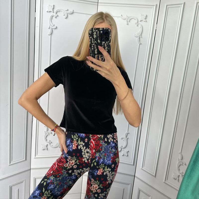 В наявності Оксамитова чорне кроп футболка 75грн Розмір: 36/S/44 34/XS/42 Довжина 44 довжина рукава 15 ширина плечей 34 ширина в грудях 43 ширина в талії 37 ширина футболки по самому низу 38 см
