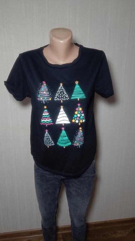 Черная футболка с новогодним принтом от бренда F&F. размер S длина 56 см ог 46 см рукав 17 см состояние идеальное 5/5