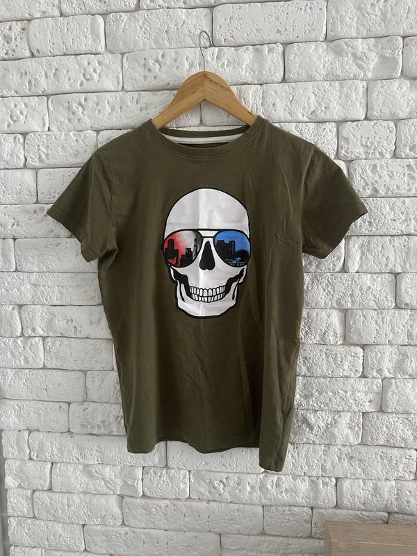 Футболка с черепом цвета хаки. Подойдет на размер s/m.