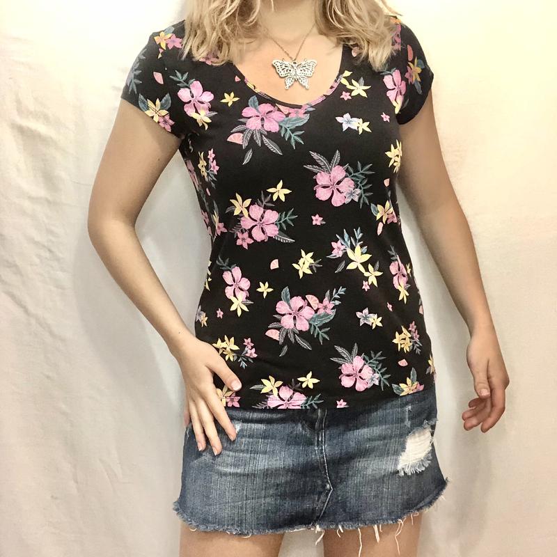 черная обтягивающая футболка с цветами 🖤🌸 бленд clockhouse размер l-xl материал коттон замеры: пог 45см длина 60см также смотрите другие мои объявления💋💖