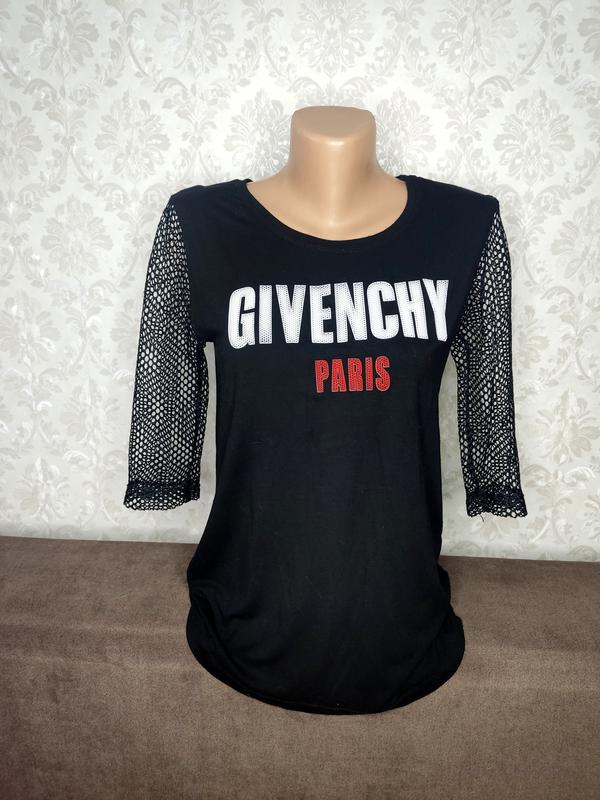 Однотонная футболка, блуза от Givenchy. Рукав три четверти с сеточкой. Контрастный принт логотип на груди и спине. Состояние очень хорошее Размер M Производитель: Италия Способ доставки: -Отправляю Новой почтой безопасным соглашением -Накладной платеж новой почтой по предоплате 150 грн - возможна полная предоплата по желанию - отправка по укр. почте возможно только в случае полной предоплаты Также смотрите другие объявления