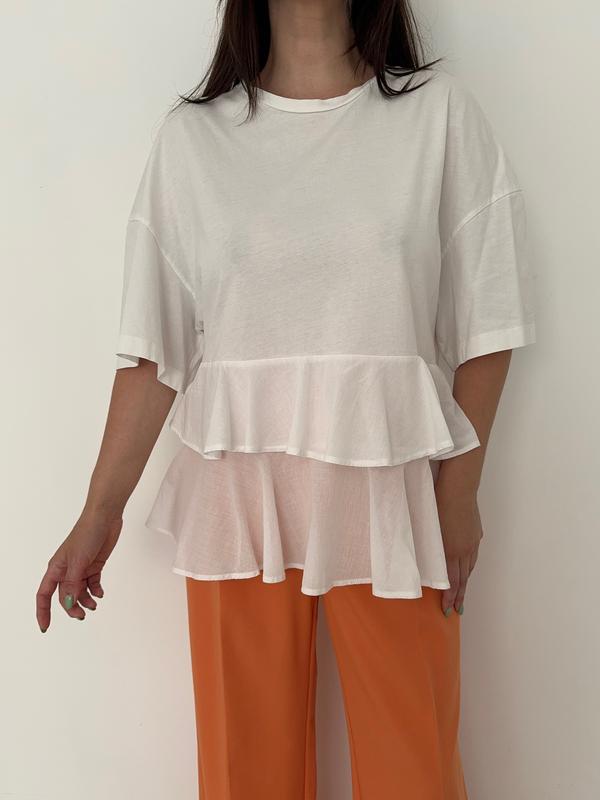 Прикольна футболка з рюшами H&M Стан 5+ Матеріал 100% бавовна Розмір M 345 грн Довжина: 65 см Напівобхват грудей: 52 см