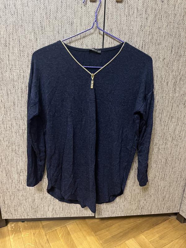 Тоненькая футболка на длинный рукав, декольте на замке. Длина 63 см, рукав 53 см