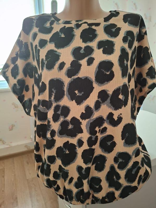 Літня футболка від George, леопардовий принт, ошатна, дуже легка, приємна до тіла Низ на гумці Розмір 18, XL Заміри: Загальна довжина - 63см ПОГ - 67см Низ - 48см, у спокійному стані Матеріал: 99% поліестер, 1% еластан Нова