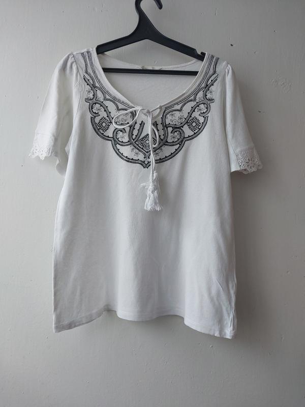 Легкая футболка с вышивкой в отличном состоянии. Длина 64 см, по груди 51 см. Тянется