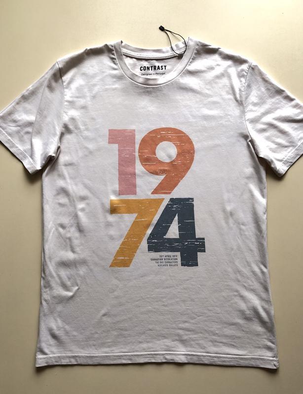 Новая, но без бирки-ценника, унисекс. Надпись на футболке о Революции гвоздика в Португалии, военный переворот, День свободы.