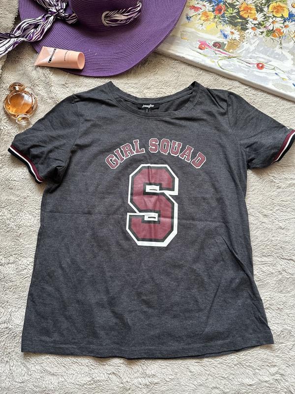 Женская летняя футболка, с принтом. Насыщенный темно серый цвет, качественный принт. Хлопок с эластаном. Замеры: Ширина в плечах - 40 см Длина - 58,5 см