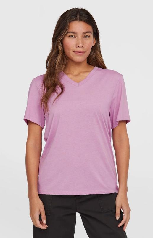 O'NEILL WOMEN ESSENTIALS V-NECK T-SHIRT | PURPLE N1850003 Відчуйте себе комфортно, де б ви не були, що б ви не робили, у футболці Essentials з V-подібним вирізом і короткими рукавами. Ця футболка звичайного крою із бавовняною сумішшю середньої щільності 150 г/кв. м і V-подібним вирізом дає вам достатньо місця для руху 60% бавовна, 40% перероблений поліестер 7600035258389