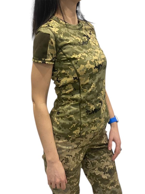 Жіноча тактична футболка в кольорі піксель. Матеріал: Coolmax Якість матеріалу: легка літня тканина з системою холодної нитки , велкро липучки на рукавах. Опис: Безшовна -гладка відстрочка швів. Футболка виготовлена з тканини Coolmax яка відводить лишню вологу. На плечах м'яке welсro для шевронів. Тканина м'яка, приємна до тіла. Сучасний анатомічний крій Бічні смуги візуально роблять фігуру більш атлетичною Витримує велику кількість праннів. На сонці не вигорає, після прання не сідає. Добре тримає форму