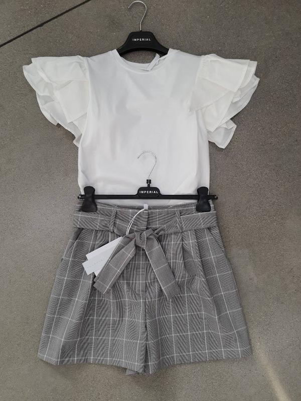 Футболка Imperial Италия, белая с рюшами, р. XS/S, в рубчик, хорошо тянется