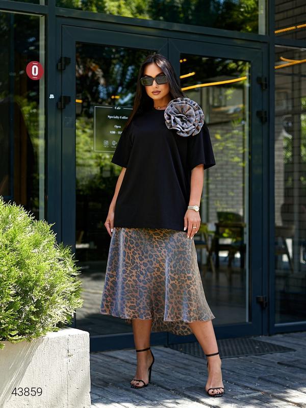 ❗️❗️❗️Перед оформлением заказ уточняйте, пожалуйста, наличие вашего размера. Срок отправки от 2 до 7 дней Новой или Укр-почтой. Вдалих покупок❤️ Футболка женская со съемной розой. Ткань: турецкий кулир (хлопок 100%), плотность 190. Цвета: черный, розовый, молочный Замеры: 50-52 ОГ 124 ОТ 124 ОБ 124 54-56 ОГ 132 ОТ 132 ОБ 132 58-60 ОГ 140 ОТ 140 ОБ 140 Растяжимость ткани 10 см Длина изделия: 74,75,76см Спущенный рукав от горловины: 44,45,46 см