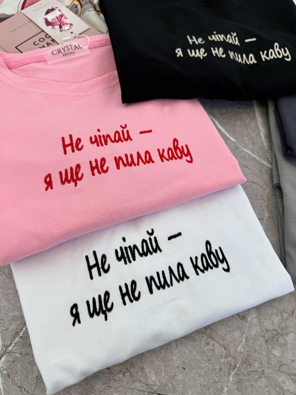💎Новинка 💎 Футболка ▫️Мод 1222 ▫️Ткань - кулир (100% хлопок) ▫️Размеры - 42-46 универсал ▫️Цвета - розовый, серый, графит, белый, черный Выбирай свой цвет и надпись, которая отражает твой вайб 🧡