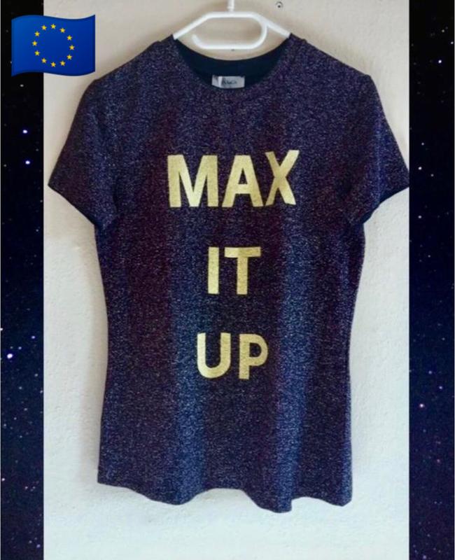Темно-синя футболка з м'якої віскози з металевою ниткою. Металізована нитка переливається різними кольорами. Футболка дуже вишукана. Довжина 65 см Ширина спини 40, плечей 12. Півобхват грудей: 48, талії: 44, низу: 49. Довжина рукава 17 см, ширина рукава 13,5. Глибина горловини становить 5,5 см. Товар знаходиться в Європі, тому на пересилку потрібно 5-7діб. Оплата покупця за доставку буде лише по Україні. Заказ з Європи на суму від 1500 грн. В мене є декілька пропозицій з Європи, запрошую до оголошень.