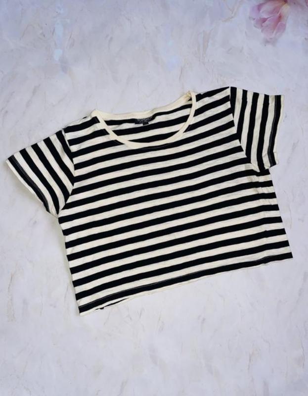 Укороченная оверсайз футболка в полоску в красивом состоянии Размер 44 Длина 40.5 Ширина 47