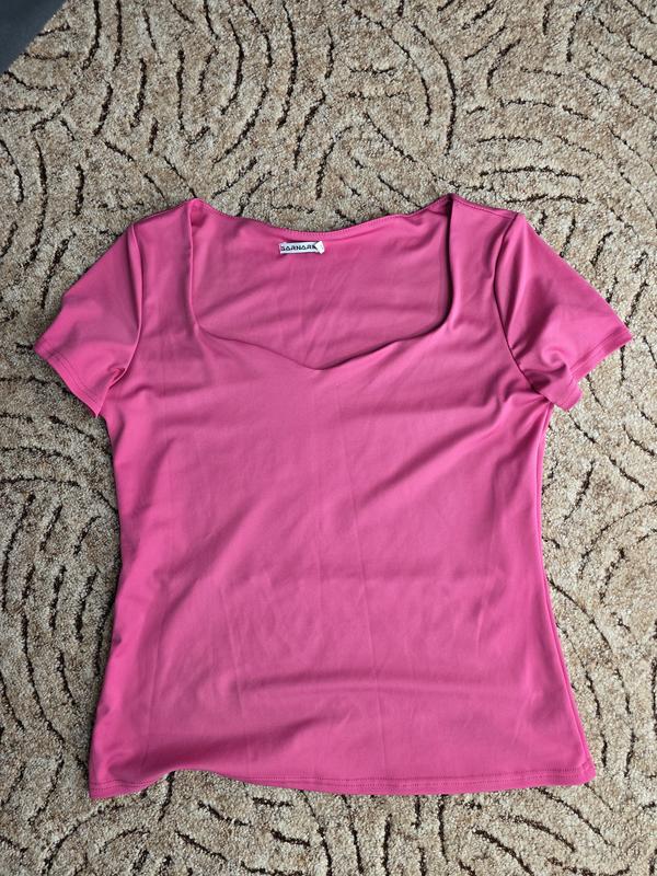 Новая нарядная футболка цвета барби. Одетая на параметры: 105-85-110, рост 170 см. Замеры: -длина 61 -плечи 41 -ОГ 94 -ОТ 86 -низ 100 Ткань очень эластичная.