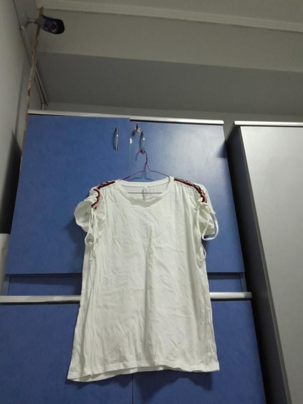 100%котон, имеет на плечах лампасы с стразами и шнурами.Замеры: длина 55см, промежутки подмышками 46-54см,низ 52-60см,рукав 10см,плечи 39-41см