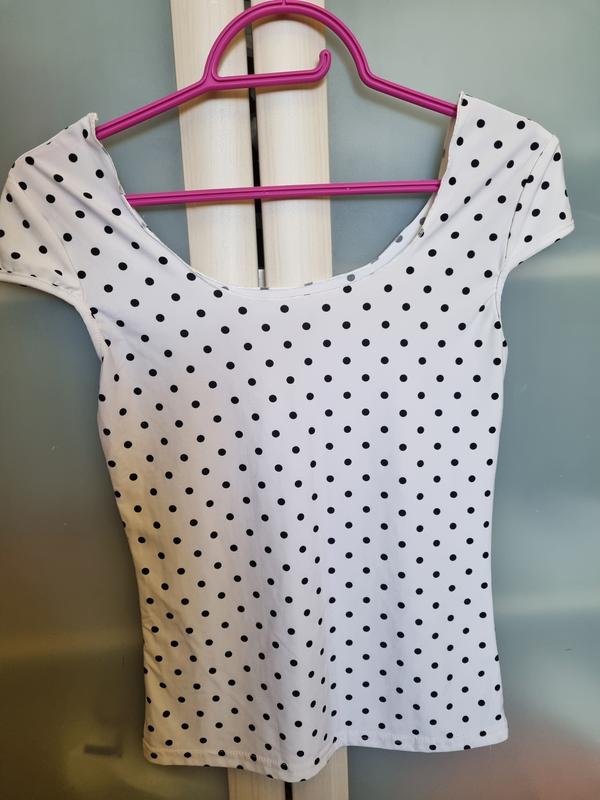 Футболка летняя белая в горошек с декором
