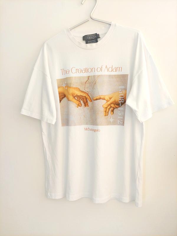 Отличная, хлопковая футболка оверсайз фасона базового белого цвета с интересным арт-принтом от Primark 🕶 ▪️Универсальная база на лето ▪️Фасон прямой, не приталенный ▪️Качественный, трендовый принт ▪️Состав замечательный -100% натуральный хлопок 🌿 ▪️Размер на бирочке-S, отлично подойдет на M/XS в качестве стильного оверсайза ▪️Состояние новой 👌👌👌