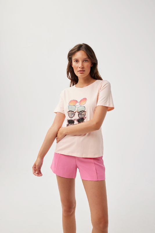 Футболка принт очки бледно-розового цвета Leo&Ugo, Франция Состав: 95% хлопок, 5% эластан Размер 4 Производитель: LEO&UGO, Франция