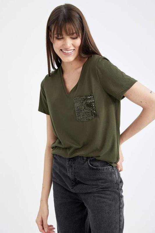 Футболка DeFacto, зелена, розмір L Зручна базова футболка DeFacto зеленого кольору. М’яка тканина, гарно сидить по фігурі. 📏 Розміри: • ПОГ — 50 см • Довжина — 60 см • Розмір — L Стан чудовий ✅ Ідеально для щоденного образу.